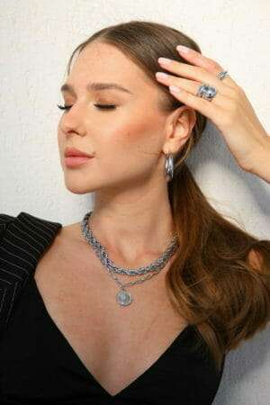 Rein - שרשרת ריין כפולה ומיוחדת עשויה כסף 925 בשילוב אבן טבעית