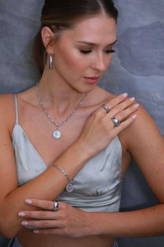 CLAIR SILVER - צמיד חוליות בשילוב מטבע