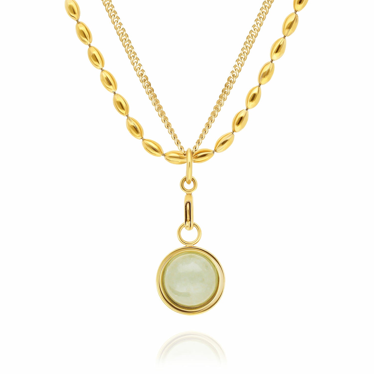 Emilia - שרשרת כפולה בסגנון רטרו בשילוב אבן טבעית ירוקה