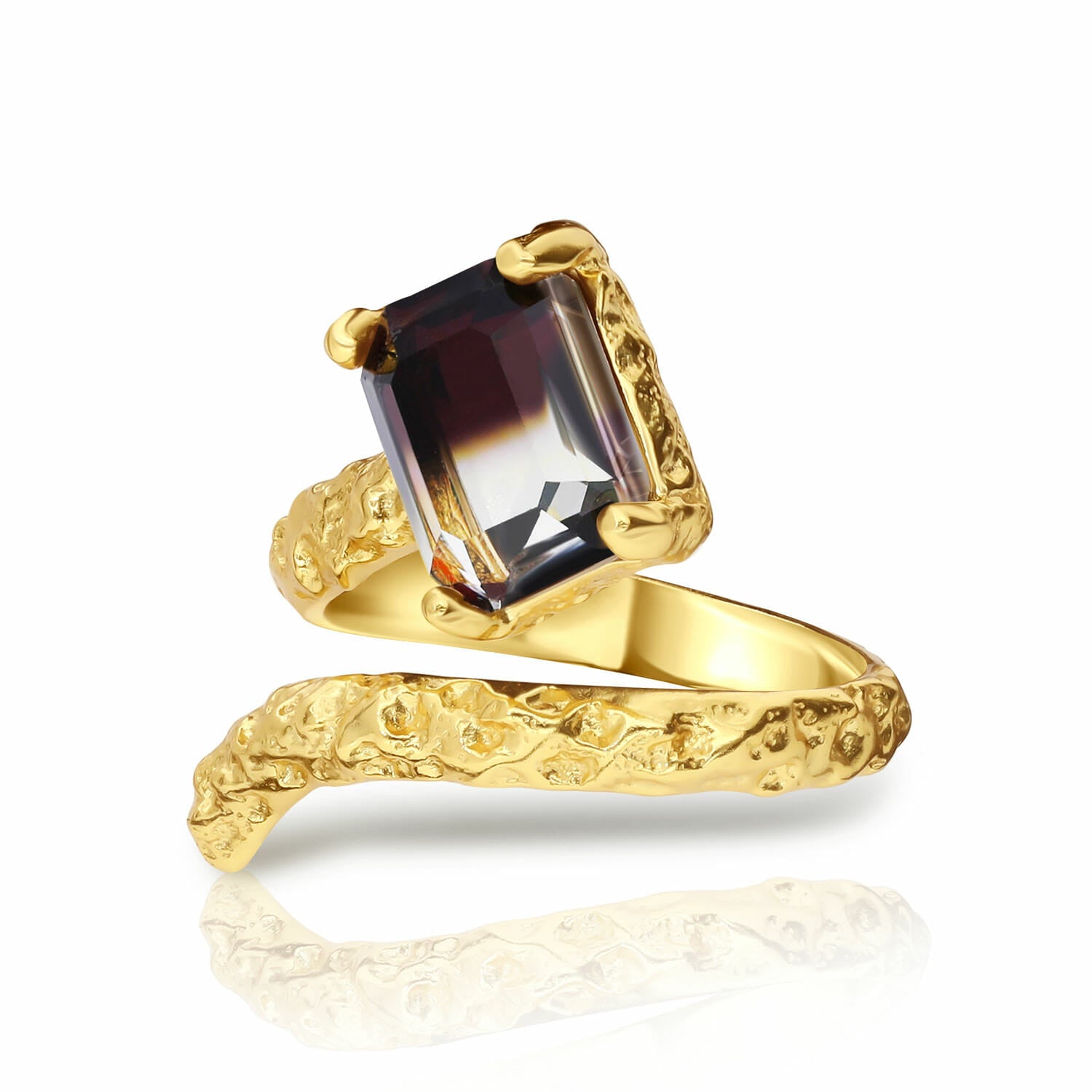 Emma Gold - טבעת מהממת, משולבת אבן טבעית עשויה כסף 925 בציפוי זהב