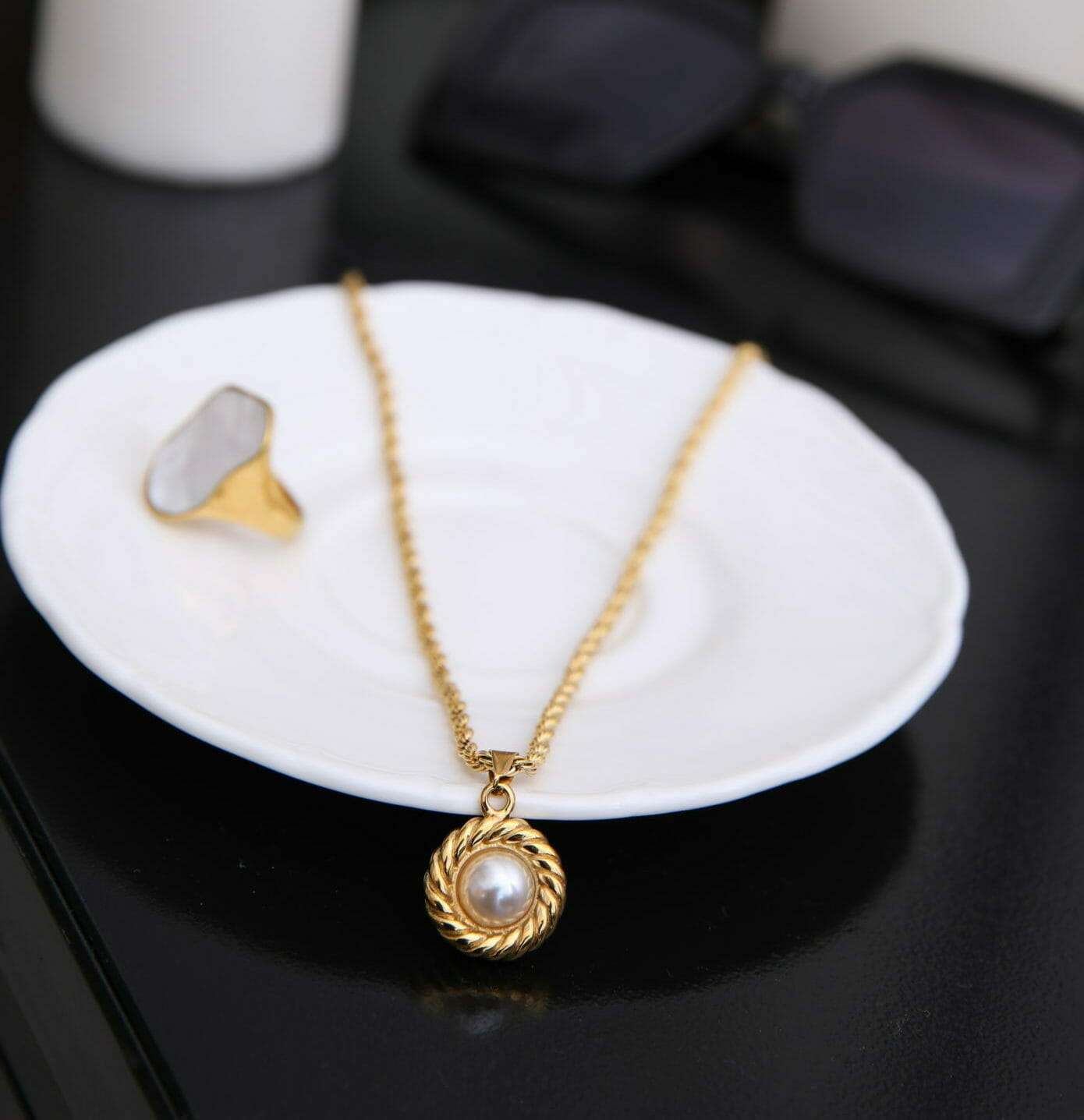 שרשרת חבל בשילוב תליון אבן פנינה טבעית